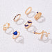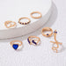 Vintage blue stacking diamond snake-shaped double heart seven-piece ring set