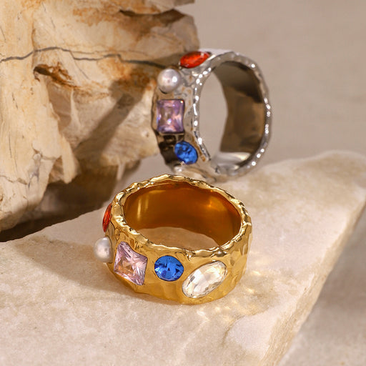 Ver todos los detallesAnillo de acero inoxidable con perla y oro de 18 quilates con incrustaciones de piedra natural