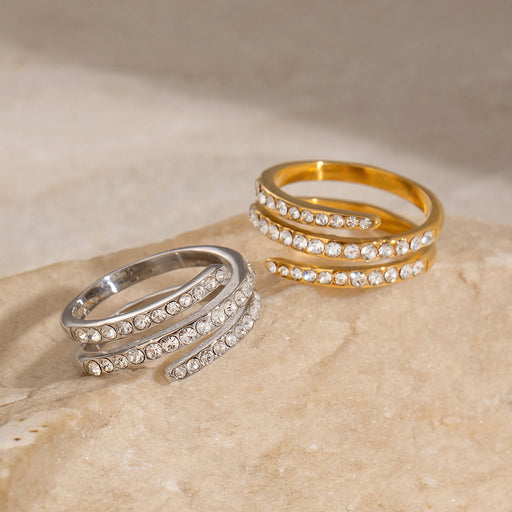 Ver todos los detallesAnillo de acero inoxidable con circonitas entrelazadas en oro de 18 quilates: elegante estilo europeo